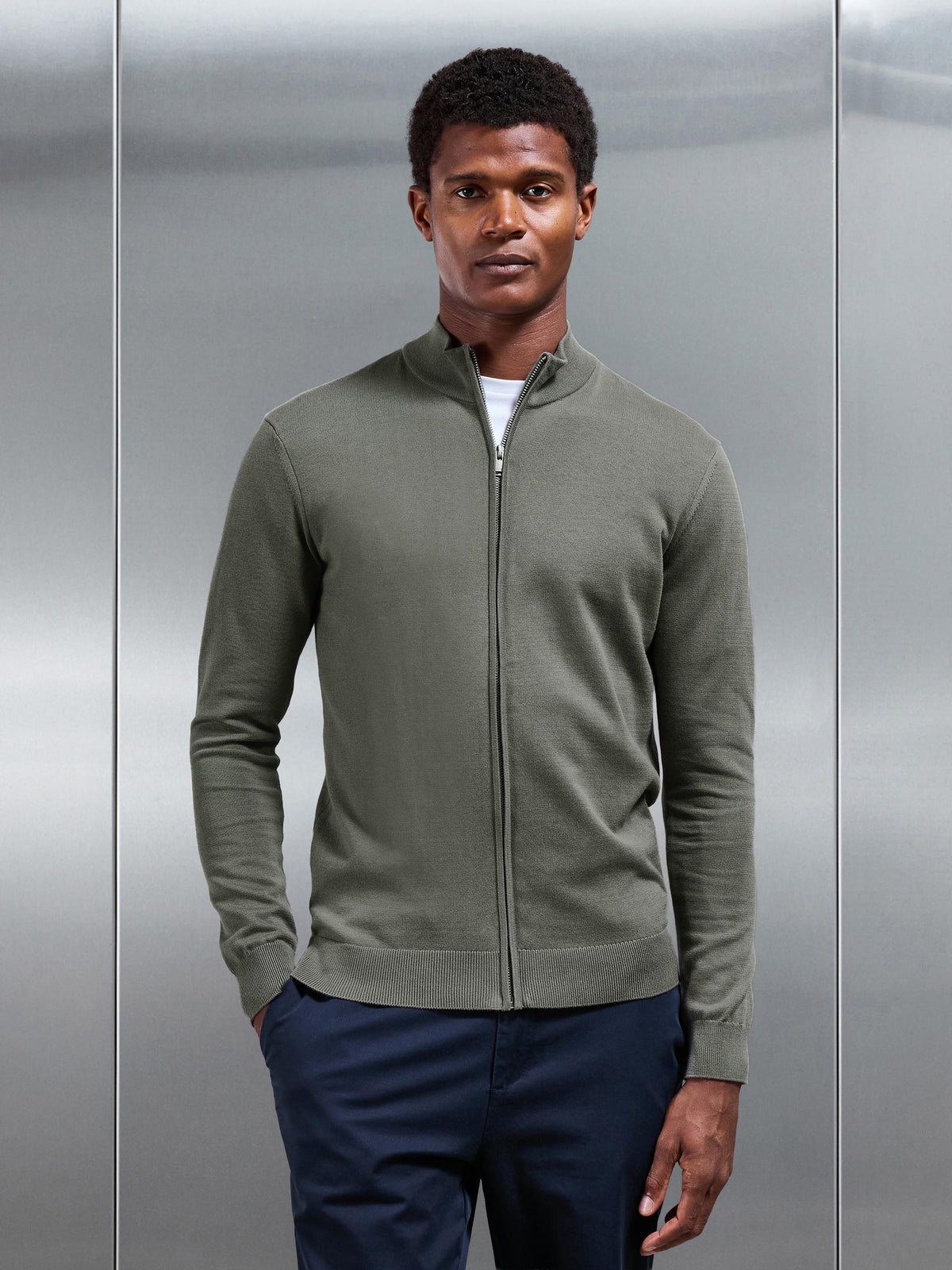 Cotton Knitted Zip Through Jacket
