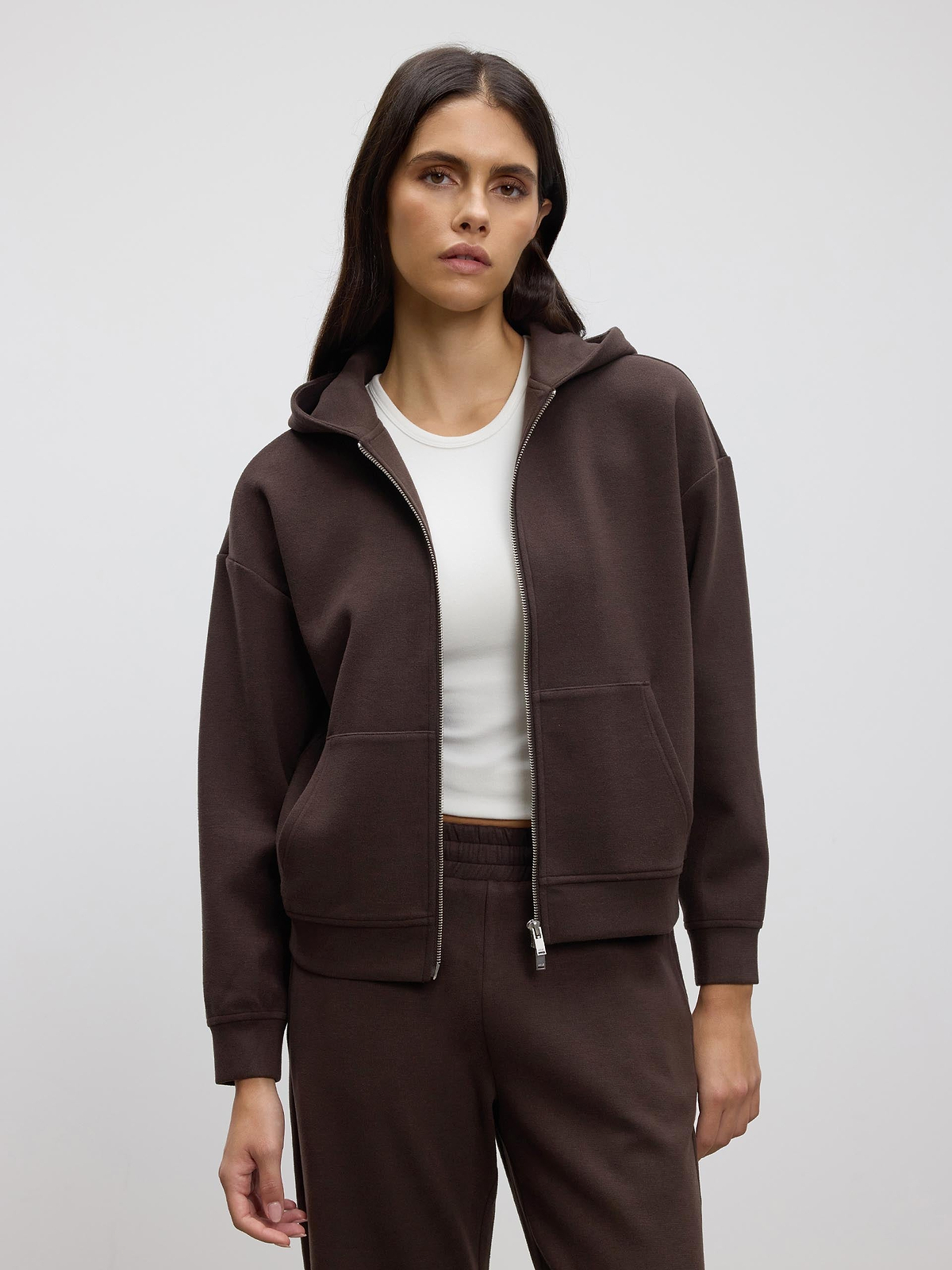 Womens Knitted Relaxed Zip Hoodie in Brown