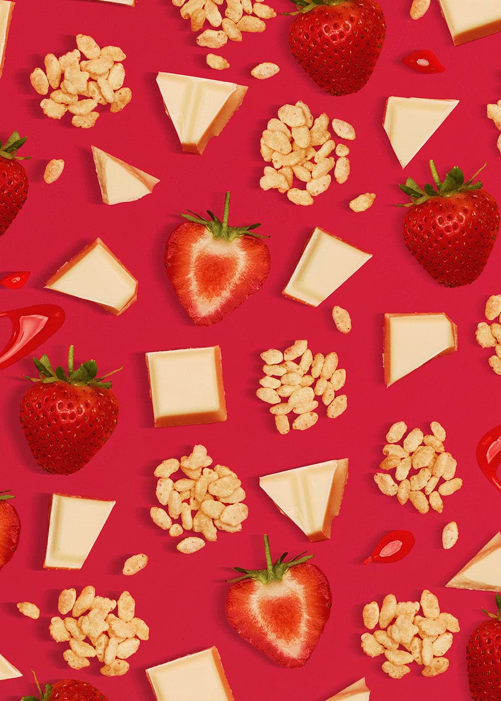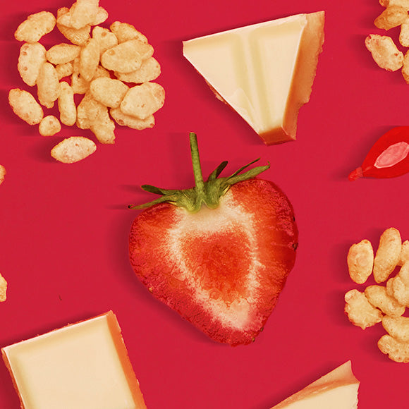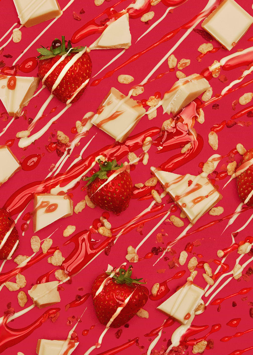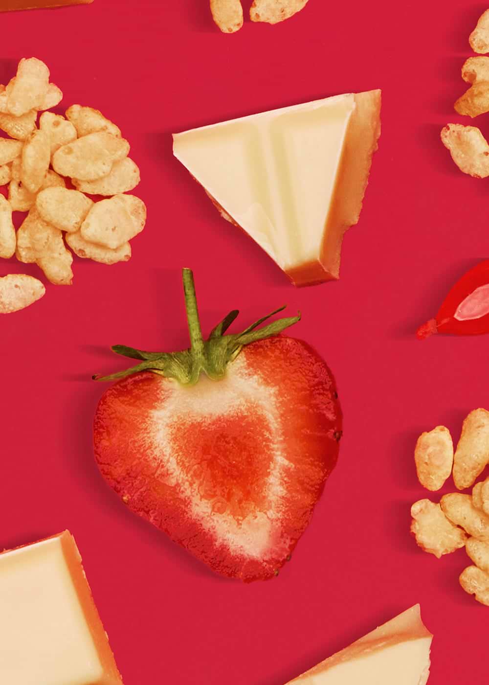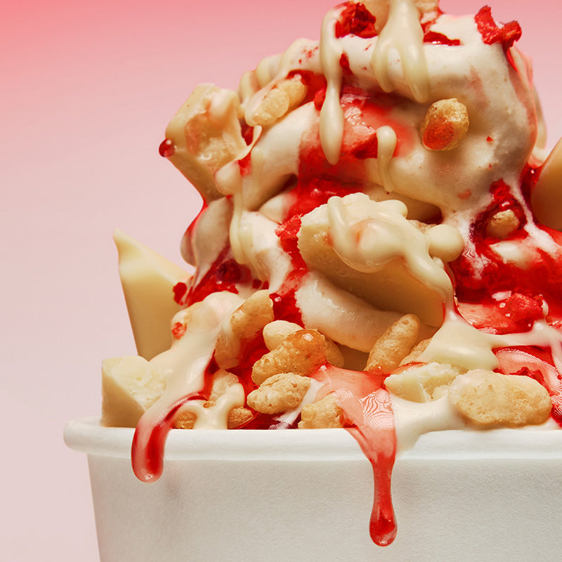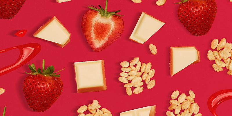 Rice Crispy, Milky Bar, Strawberry Sauce