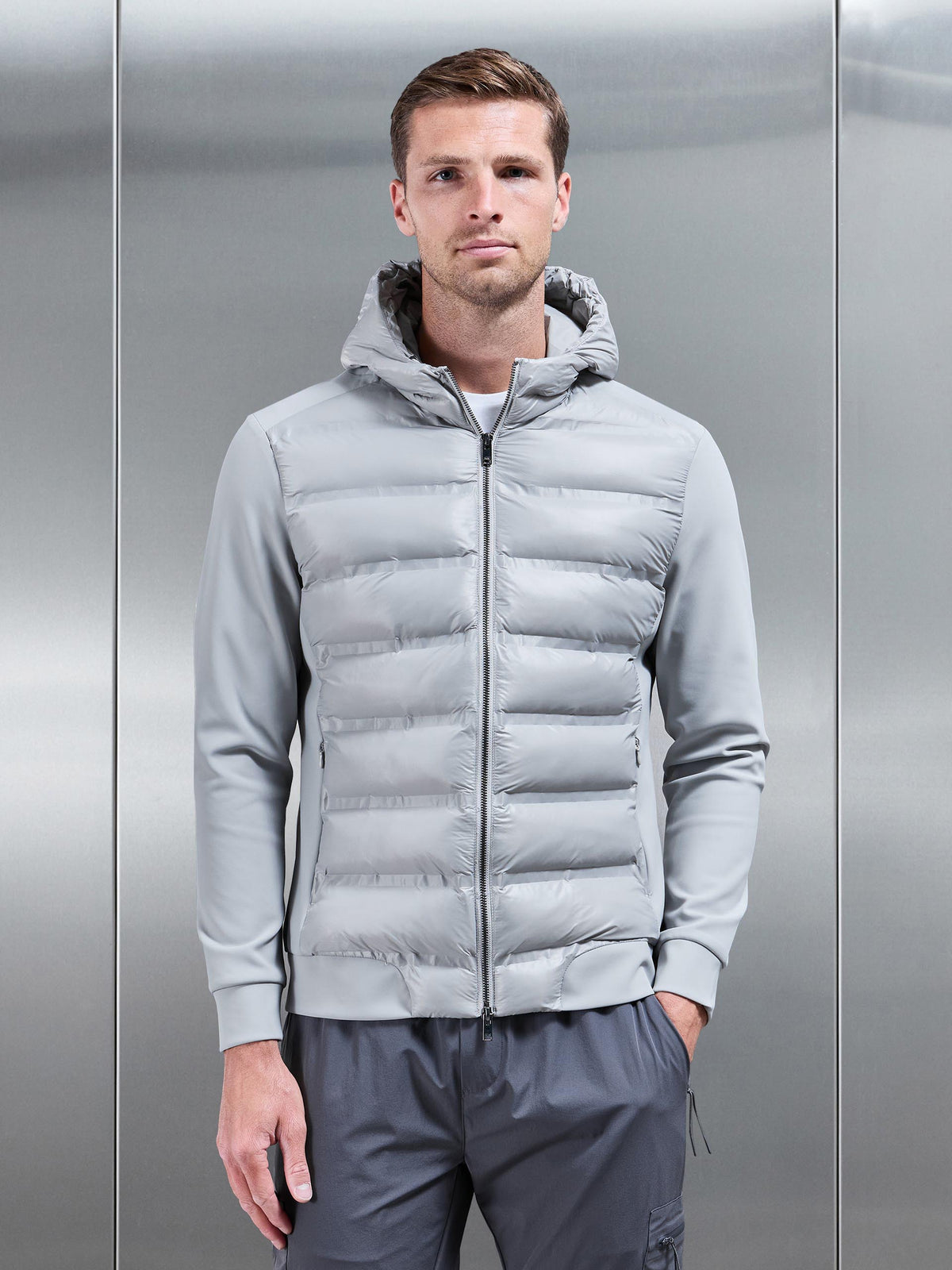 High shine woven fabrication to the front body and hood, lightly padded for comfort and insulation