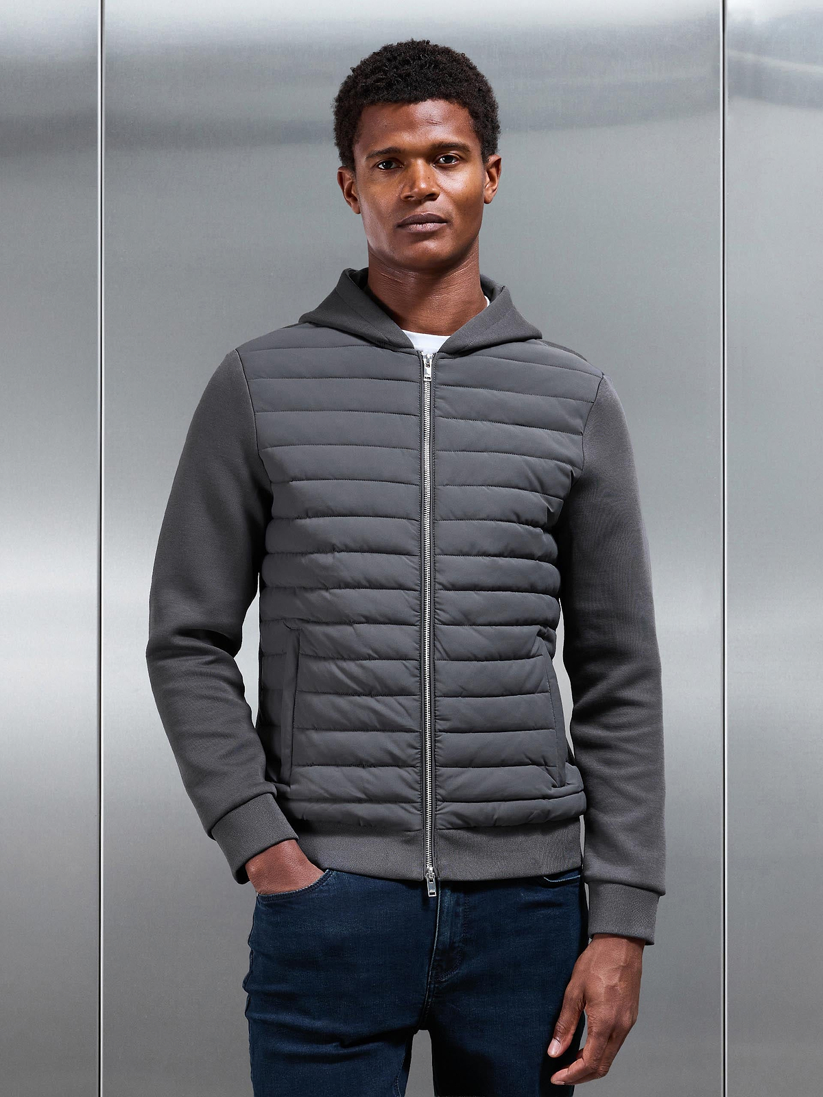 Slim fit hybrid jacket with 3 panel hood to the neckline