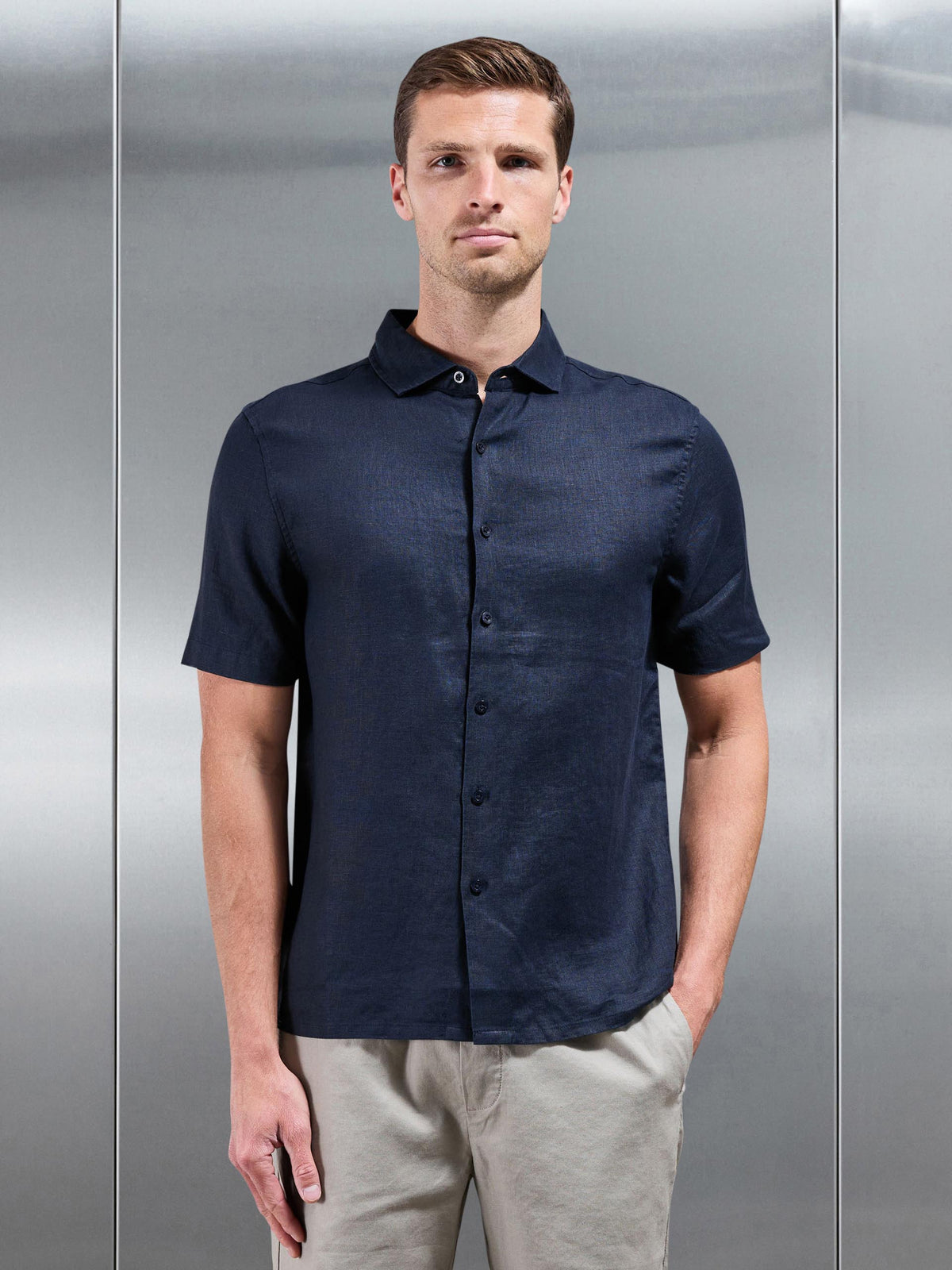 Linen Short Sleeve Cutaway Collar Shirt