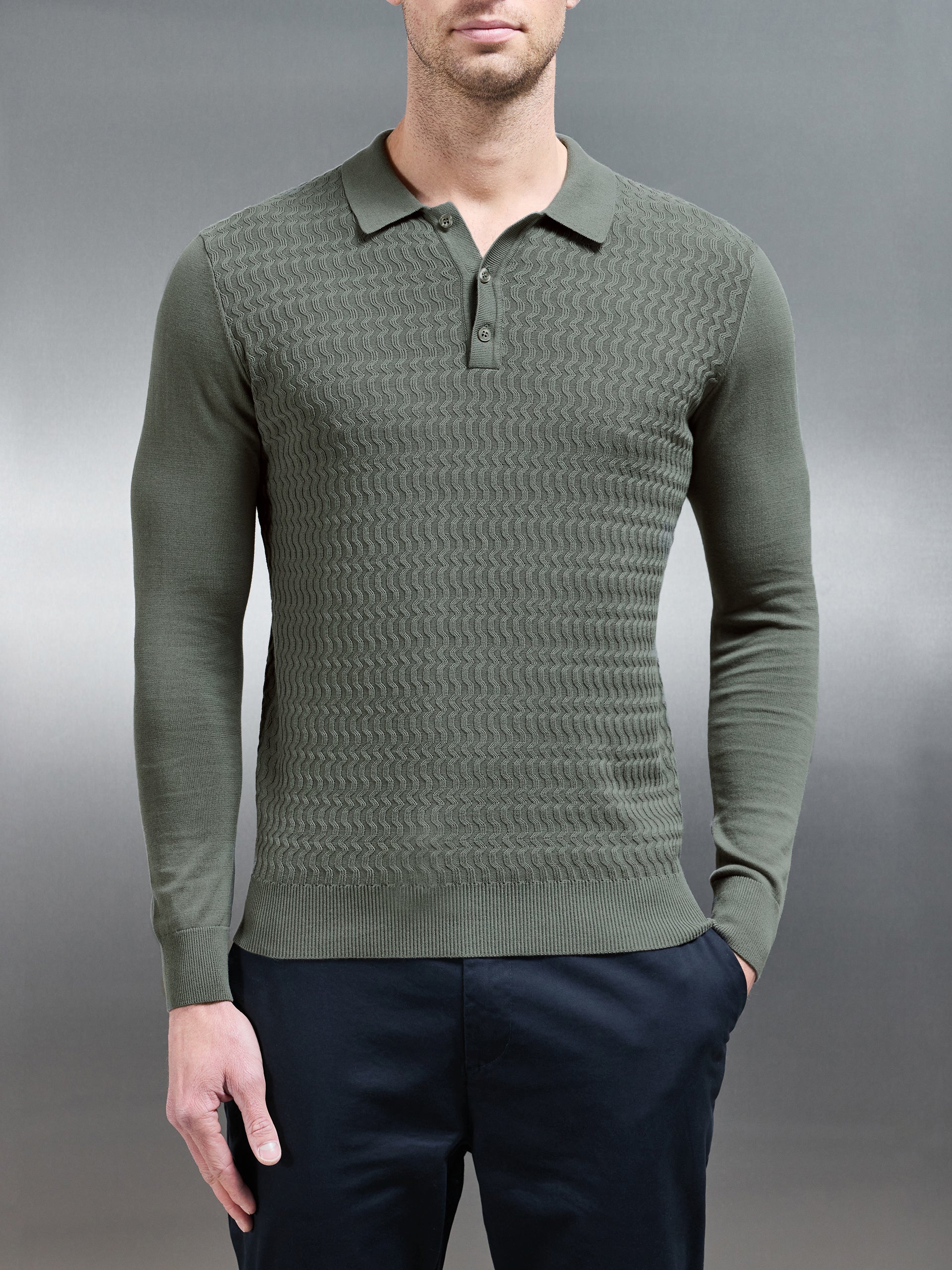 Cotton Knitted Long Sleeve Textured Polo Shirt