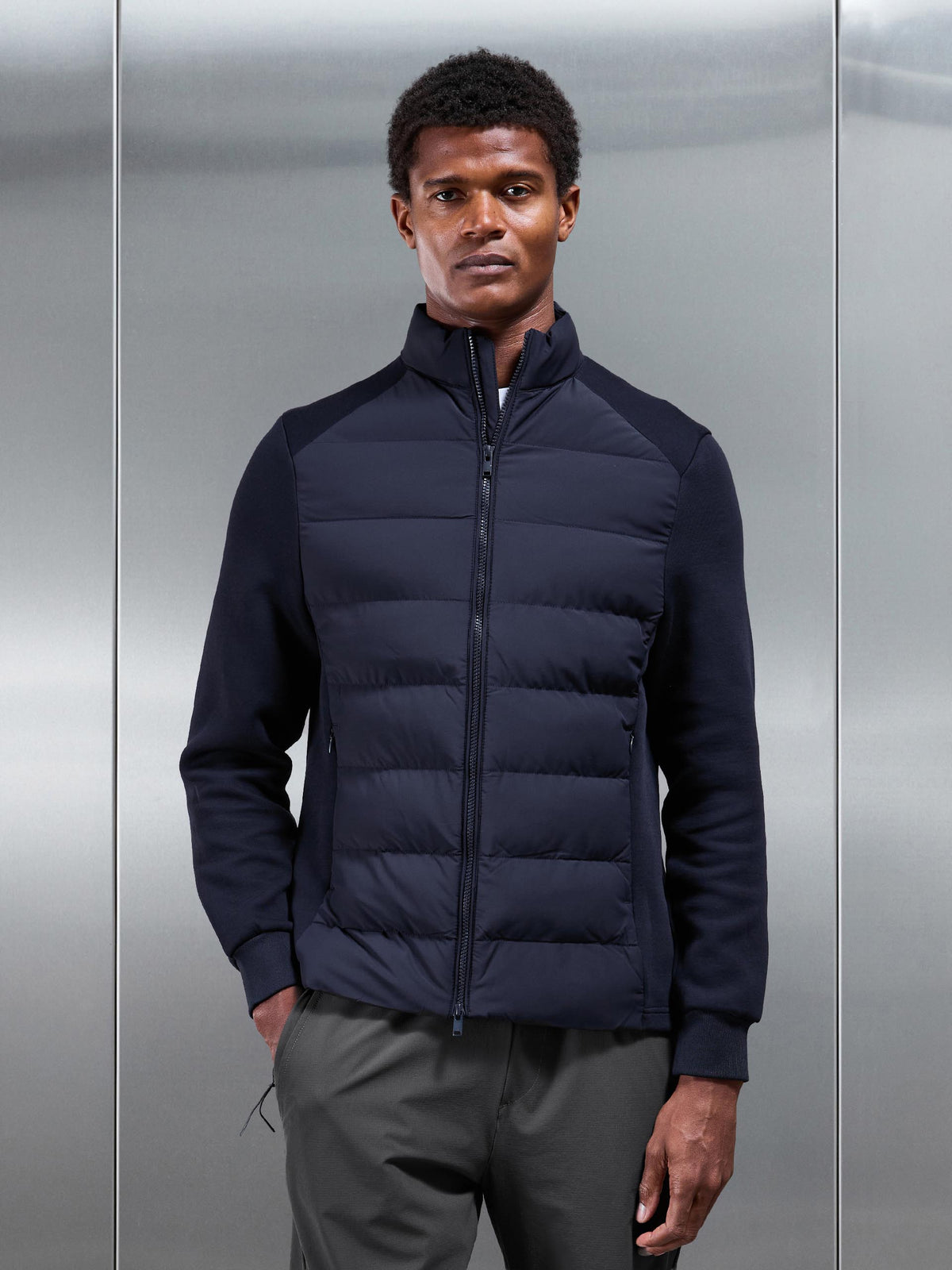 Hybrid Technical Puffer Jacket in Navy