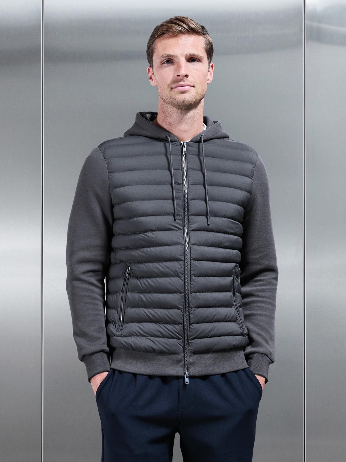 Hybrid Quilted Technical Windbreaker in Grey