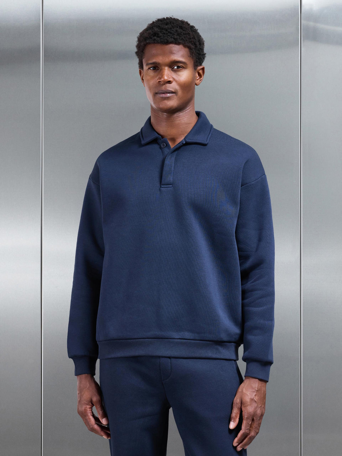 Neoprene Relaxed Fit Button Polo Shirt - Navy