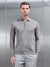 Cotton Knitted Long Sleeve Button Polo Shirt - Taupe Marl