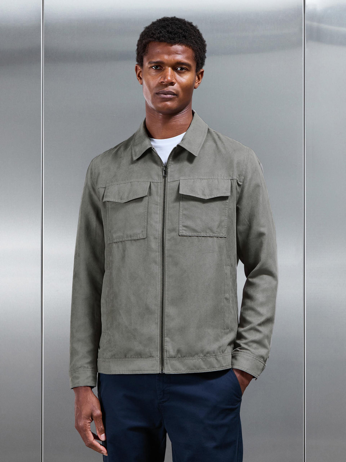 Faux Suede Jacket in Dark Stone