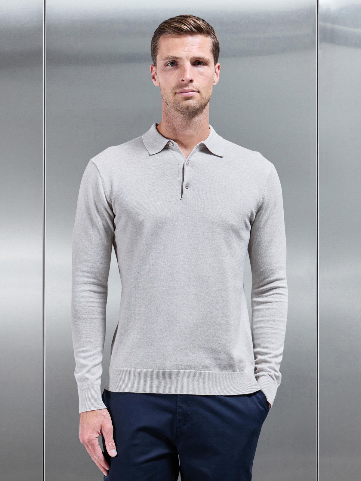 Cotton Knitted Long Sleeve Button Polo Shirt