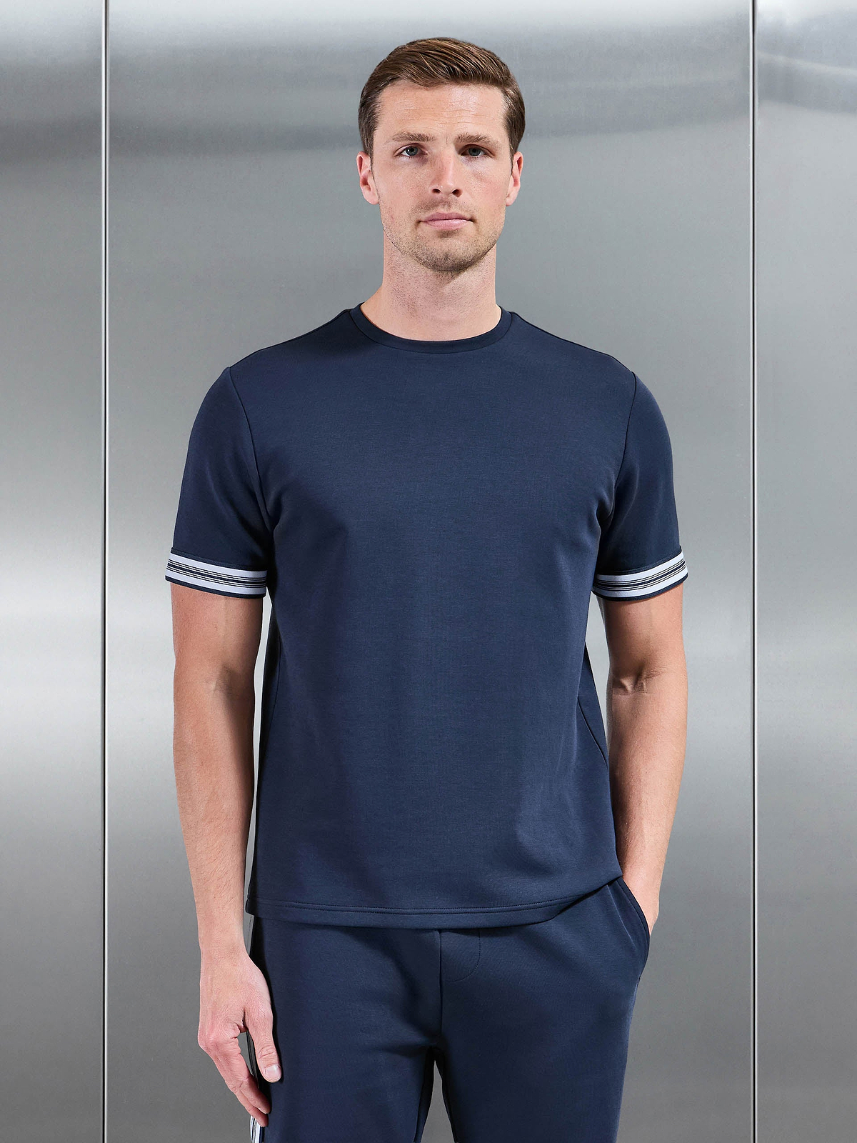 Everyday Luxe Stripe Cuff T-Shirt in Navy
