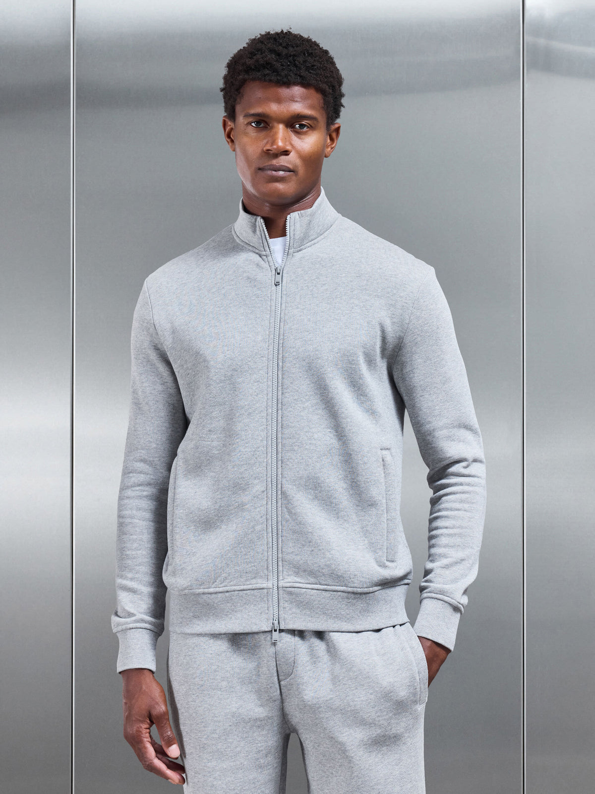 Neoprene Funnel Neck Jacket in Marl Grey